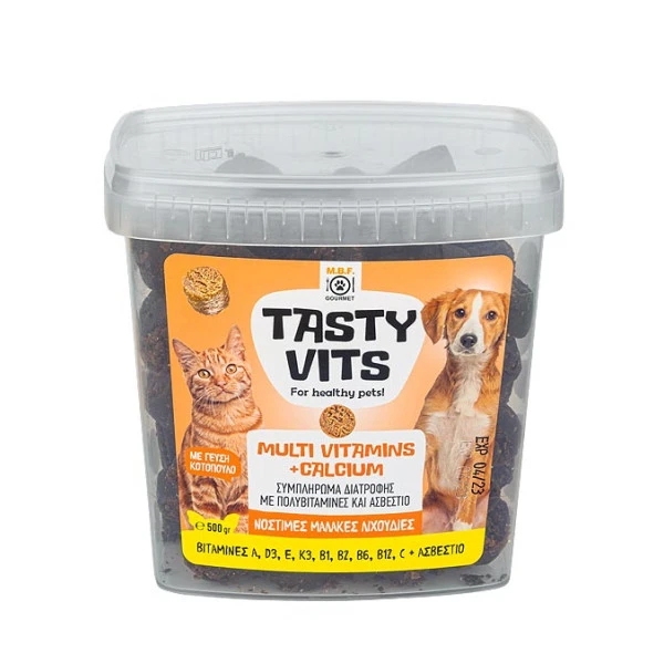 M.B.F. Gourmet Tasty Vits Multi Vitamins+Calcium (Μαλακές Λιχουδιές με Πολυβιταμίνες και Ασβέστιο για Σκύλους και Γάτες με γεύση Κοτοπουλο)500gr