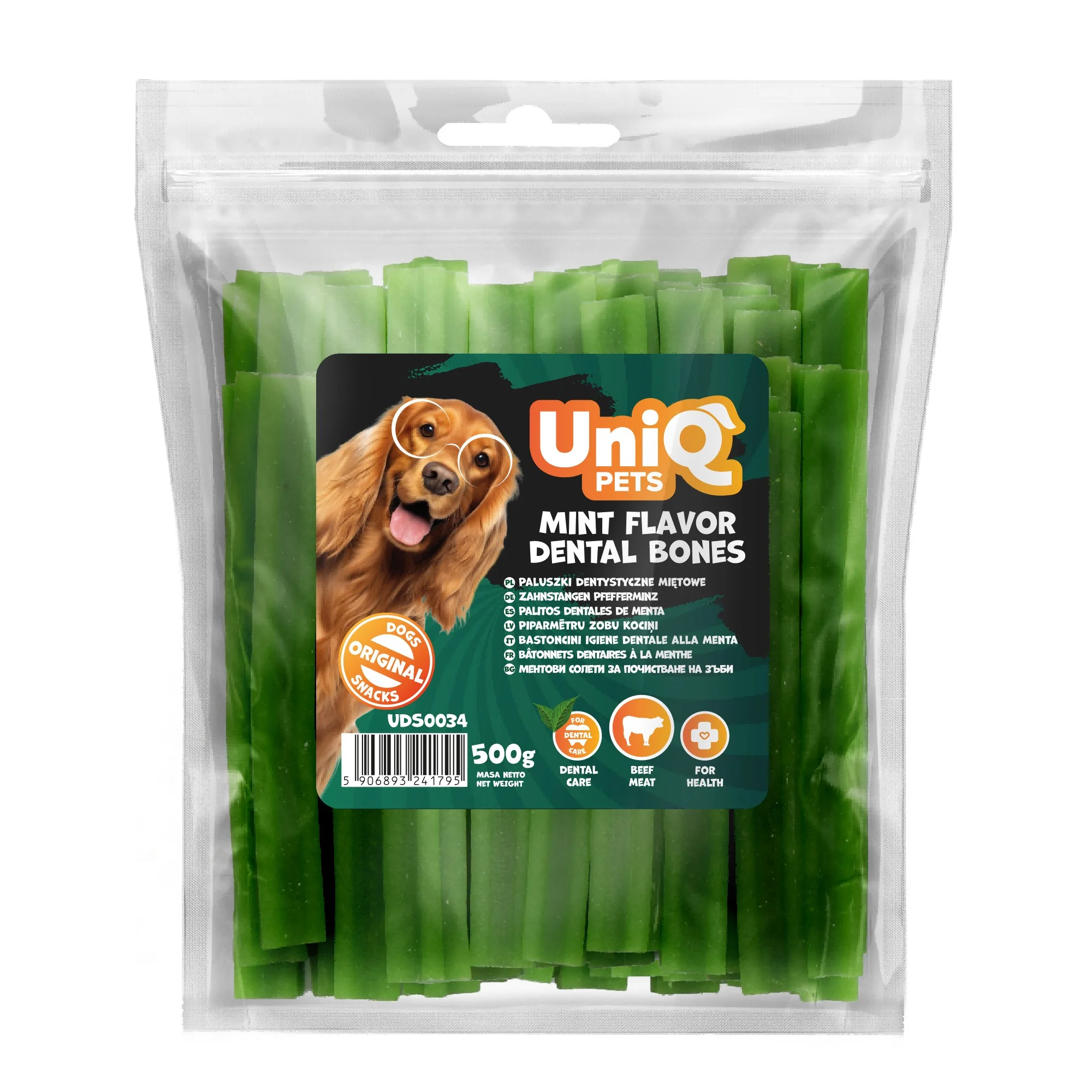Τα Mint Flavor Dental Bones της Uniq Pets είναι Original Snacks for Dogs με μια ιδιαίτερη πράσινη εμφάνιση και γεύση μέντας (MINT FLAVOR). Είναι σχεδιασμένα για να παρέχουν εντατική οδοντική φροντίδα και να συμβάλλουν στη φρεσκάδα της αναπνοής, καθώς έχουν σχήμα οδοντικών στικ/κόκκαλων.