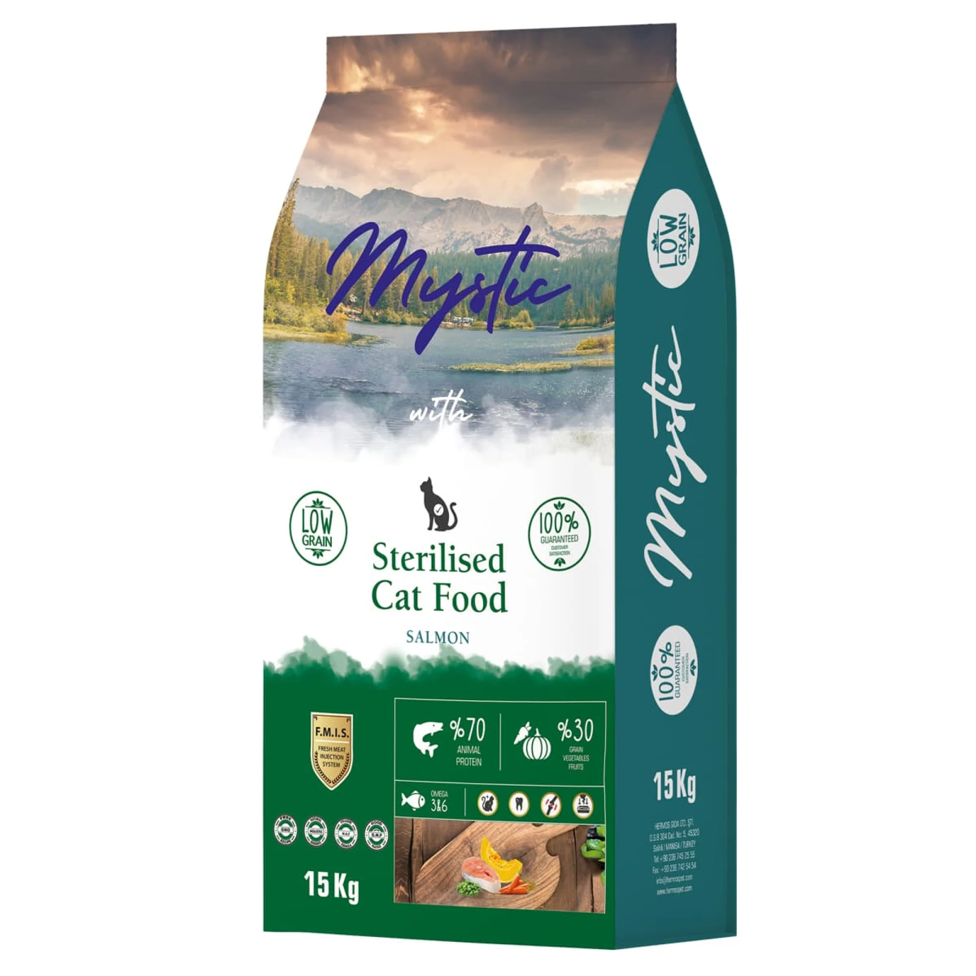 Mystic Υποαλλεργική Low Grain 15kg Ξηρά Τροφή για Στειρωμένες Γάτες με Σολομό