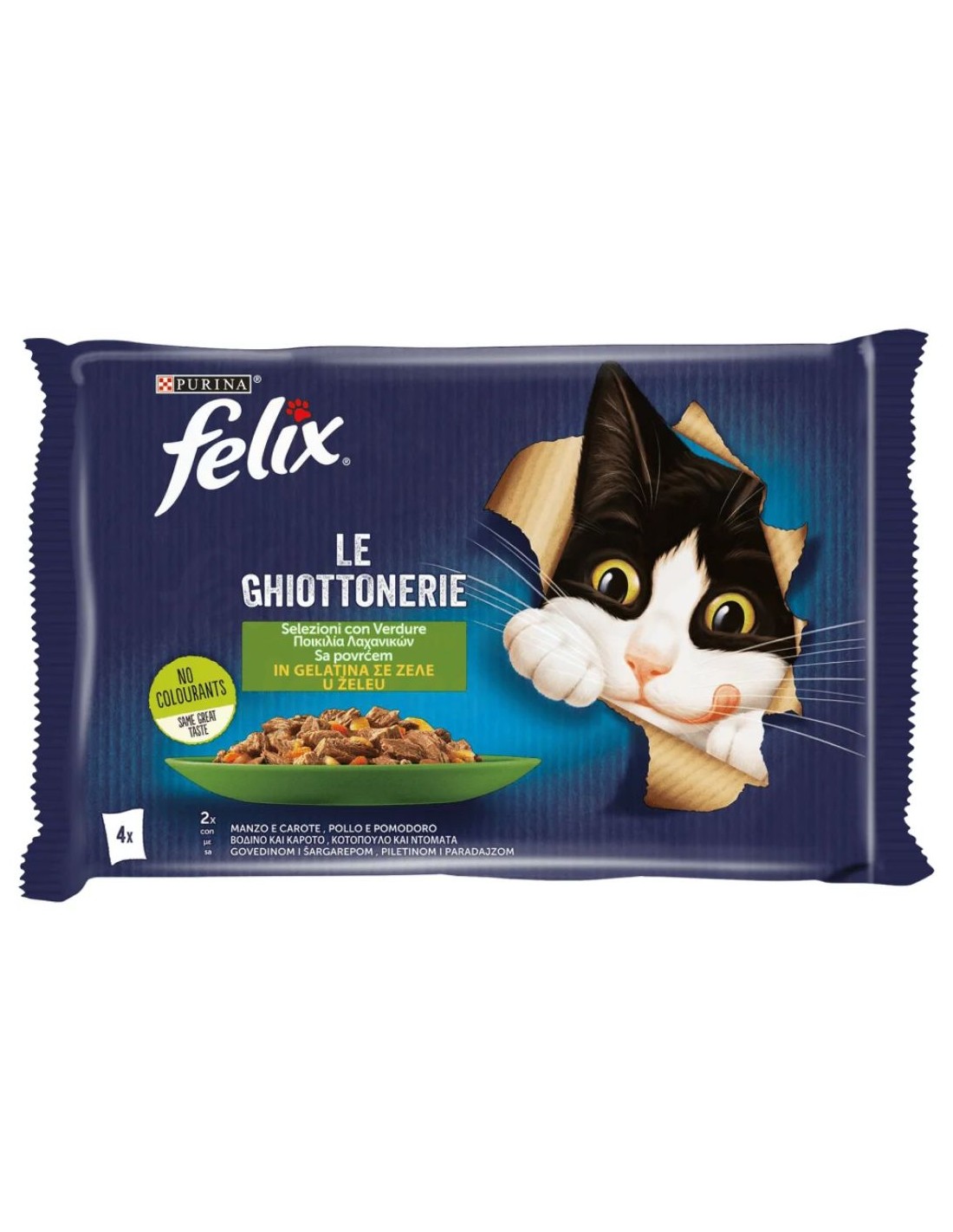 Purina Felix Le Ghiottonerie Μοσχάρι, Κοτόπουλο, Ντομάτα & Καρότο σε Ζελέ 4x85g